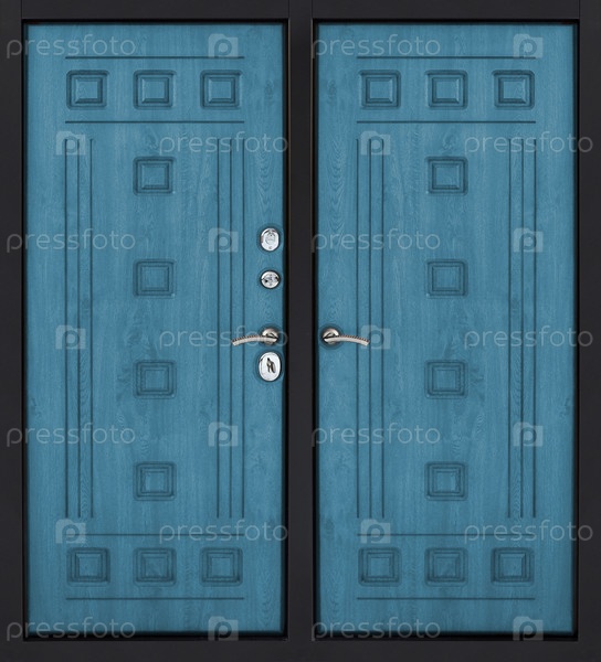 Двустворчатая входная металическая дверь, изолированная на белом фоне