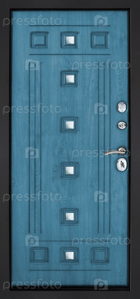 Модель входной металлической двери, изолированная на белом фоне
