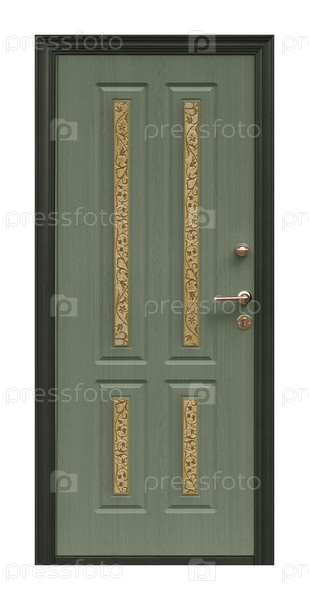 Модель входных металлических дверей, изолированных на белом фоне