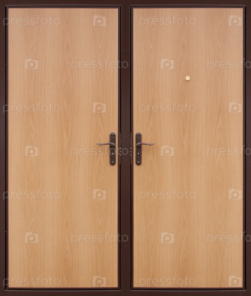 Двустворчатая входная металическая дверь, изолированная на белом фоне