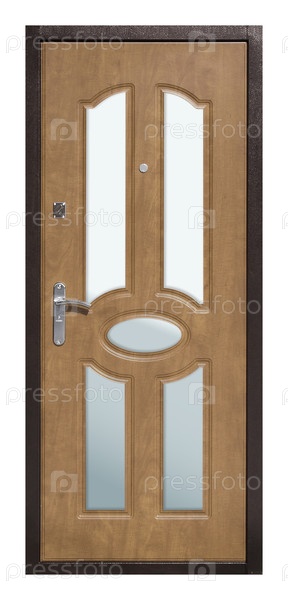 Модель входной металлической двери, изолированная на белом фоне