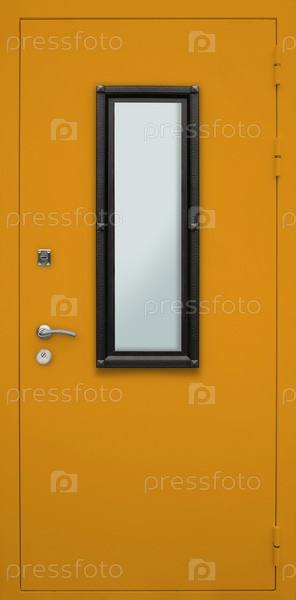 Модель входной металлической двери, изолированная на белом фоне