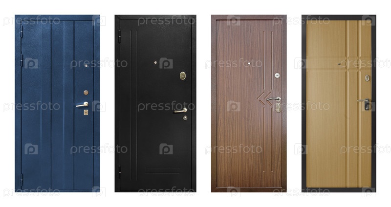 Набор моделей входных металлических дверей, изолированных на белом фоне