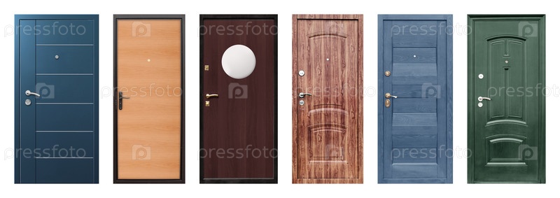 Набор моделей входных металлических дверей, изолированных на белом фоне