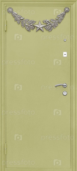 Входная металическая дверь, изолированная на белом фоне