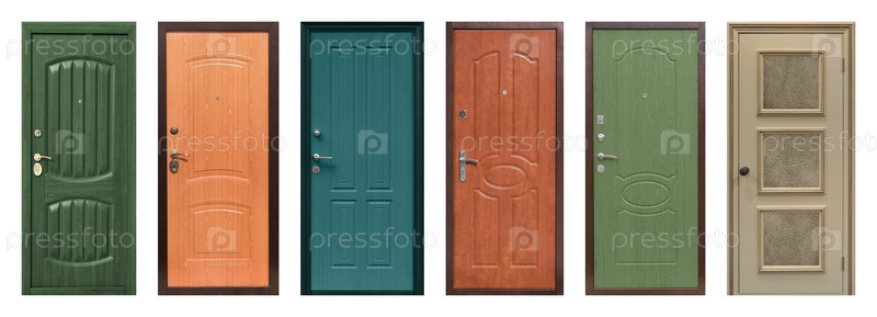 Набор моделей входных металлических дверей, изолированных на белом фоне