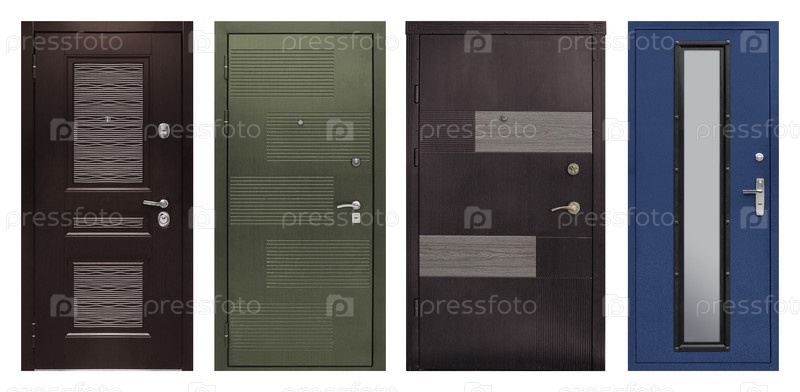 Набор моделей входных металлических дверей, изолированных на белом фоне
