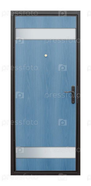 Модель входной металлической двери, изолированная на белом фоне