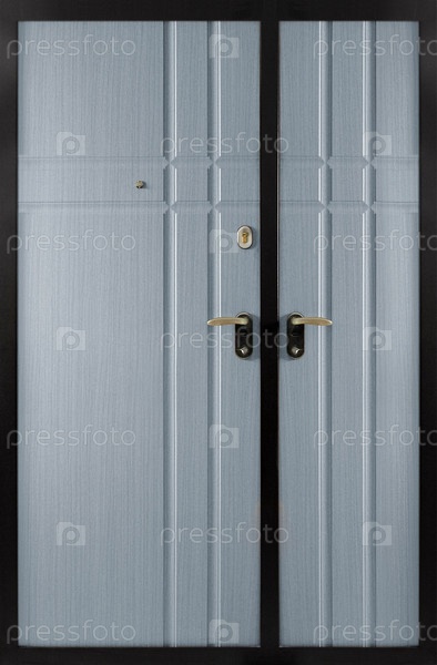 Модель двойных входных металлических дверей, изолированных на белом фоне