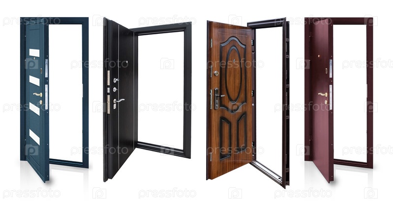 Набор моделей входных металлических дверей, изолированных на белом фоне