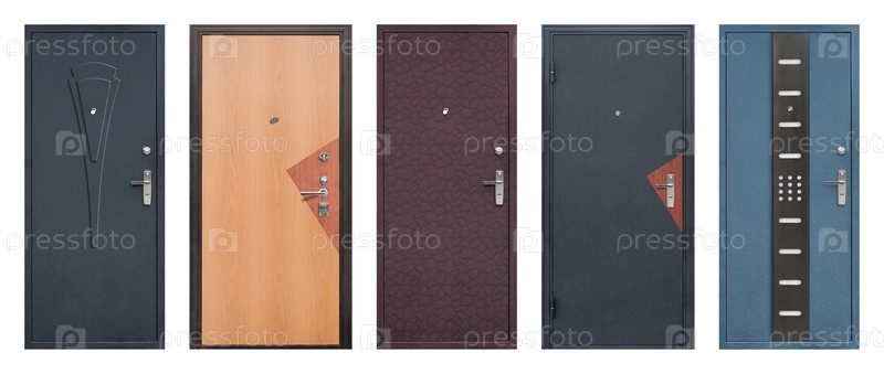 Набор моделей входных металлических дверей, изолированных на белом фоне