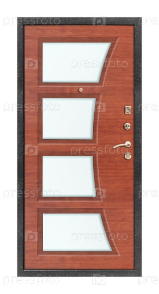 Модель входной металлической двери, изолированная на белом фоне