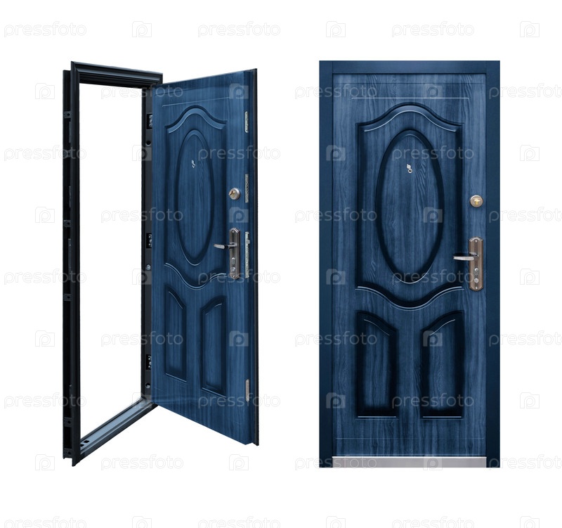 Набор моделей входных металлических дверей, изолированных на белом фоне