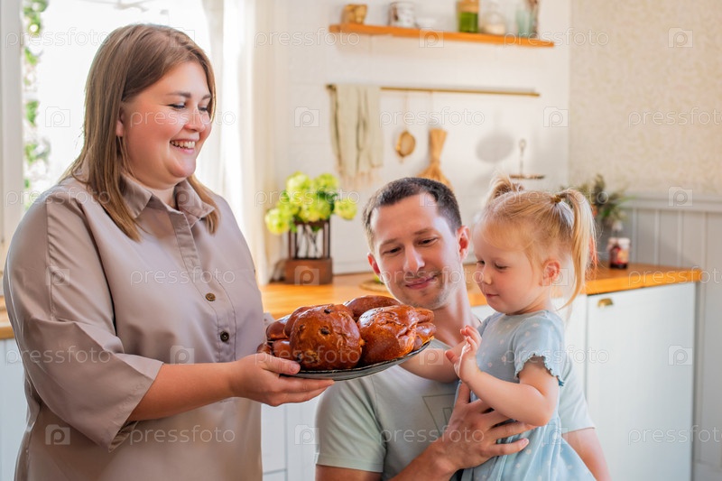 Семья наслаждается завтраком вместе на уютной кухне