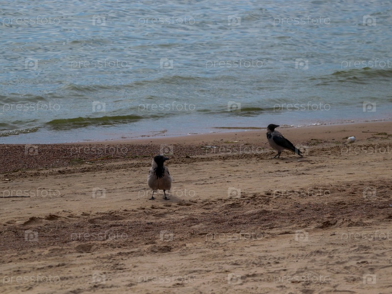 Вороны на берегу моря