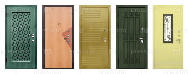 Набор моделей входных металлических дверей, изолированных на белом фоне