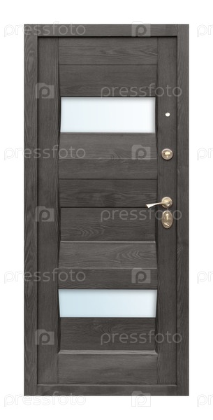 Модель входной металлической двери, изолированная на белом фоне