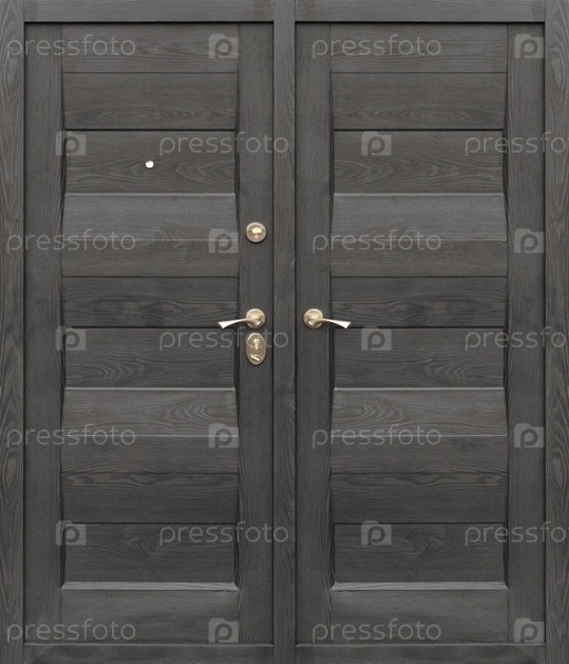 Модель двойных входных металлических дверей, изолированных на белом фоне