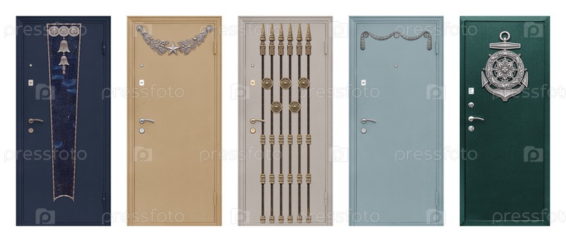 Набор моделей входных металлических дверей, изолированных на белом фоне