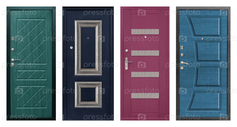 Набор моделей входных металлических дверей, изолированных на белом фоне