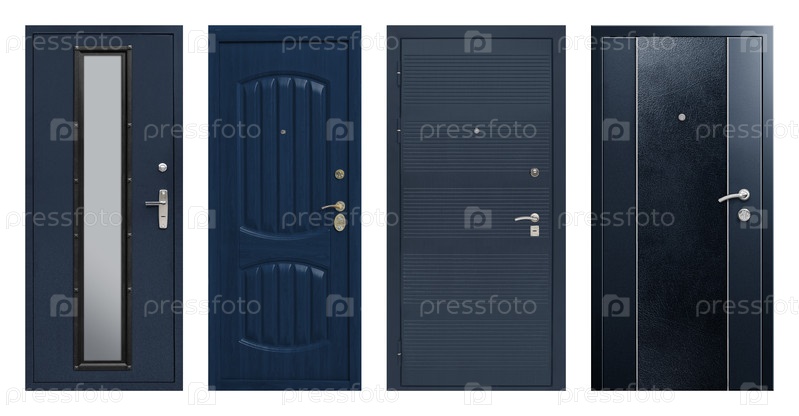 Набор моделей входных металлических дверей, изолированных на белом фоне