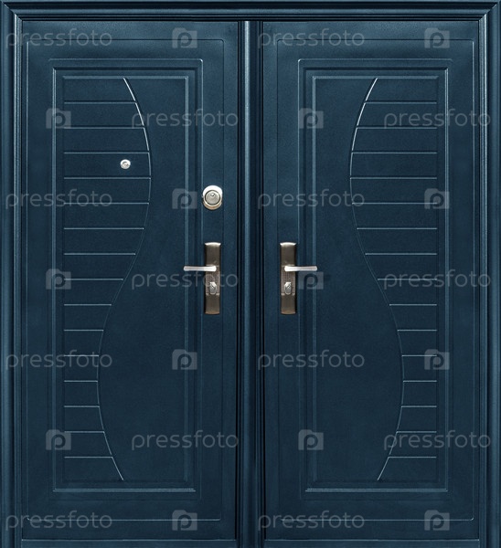 Модель двойных входных металлических дверей, изолированных на белом фоне
