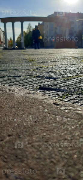 Исследуйте забытые тропы на рассвете в оживленном городском районе, полном текстурированного дорожного покрытия и восходящего солнца