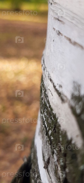 Невероятная текстура ствола березы, окруженного безмятежным осенним пейзажем, передающая красоту природы в мягком, теплом свете