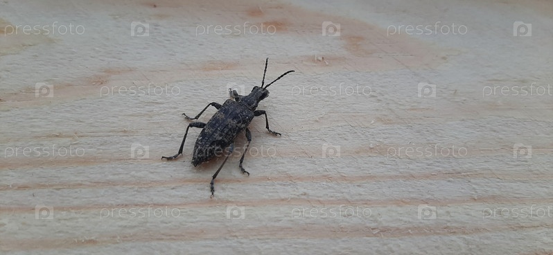 Изучаем сложные детали текстурированного насекомого, покоящегося на деревянной поверхности в безмятежный полдень на природе