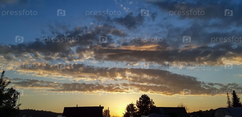 Куча облаков в небе во время заката