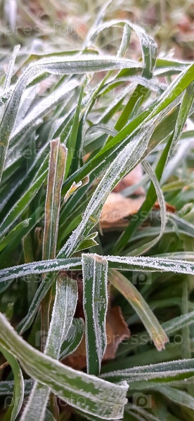 Покрытые инеем клеверы блестят в лучах раннего утра, запечатлевая безмятежный момент в объятиях природы