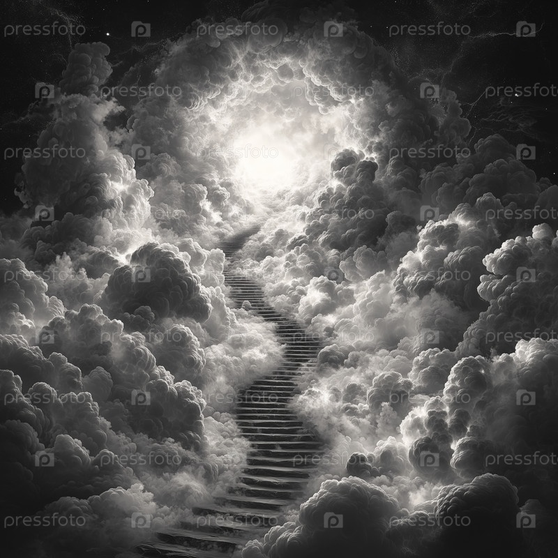 Лестница сквозь темные облака, ведущая к яркому свету