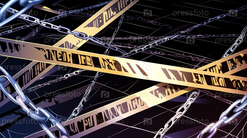 Цепи и предупреждающие ленты на заднем плане