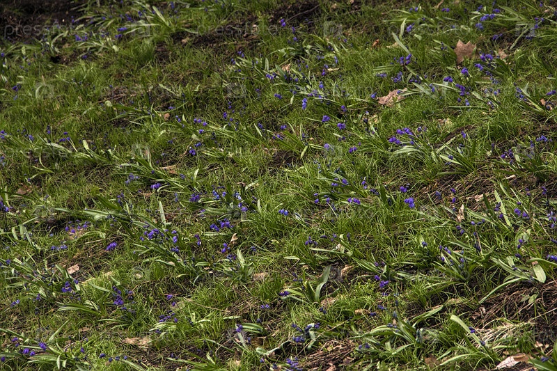 Синие подснежники среди травы