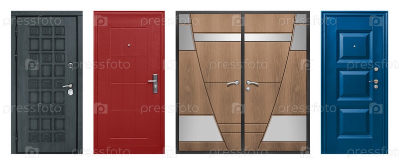 Набор моделей входных металлических дверей, изолированных на белом фоне