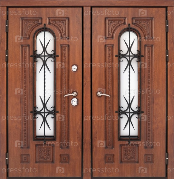 Модель двустворчатой входной металлической двери, изолированной на белом фоне