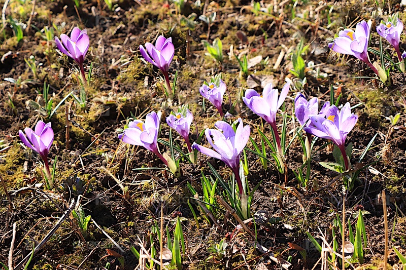 Нежные цветы крокуса в весеннем саду. Концепция прихода весны и красивая цветочная поздравительная открытка. Абстрактный цветочный фон, баннер для экрана или шаблон для дизайна, селективный фокус