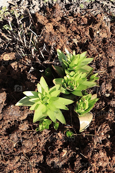 Первые ростки цветов в саду покрыты конским навозом. Навоз — это экологически чистое натуральное удобрение, которое используется в деревне. Концепция естественного образа жизни