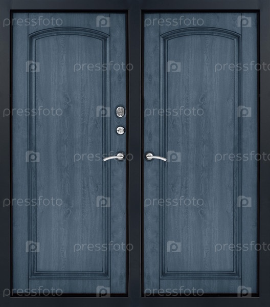 Модель входной металлической двери, изолированная на белом фоне