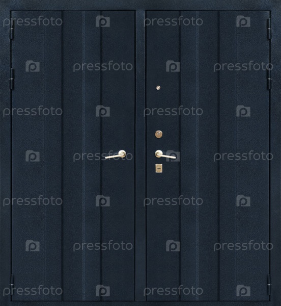 Двустворчатая входная металическая дверь, изолированная на белом фоне