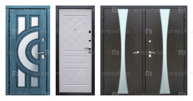 Набор моделей входных металлических дверей, изолированных на белом фоне