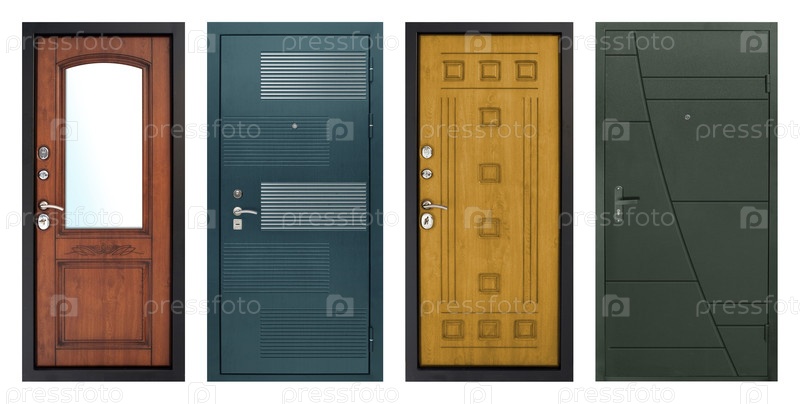 Набор моделей входных металлических дверей, изолированных на белом фоне
