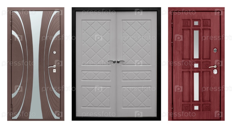 Набор моделей входных металлических дверей, изолированных на белом фоне