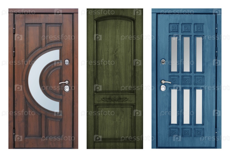 Набор моделей входных металлических дверей, изолированных на белом фоне