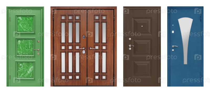 Набор моделей входных металлических дверей, изолированных на белом фоне