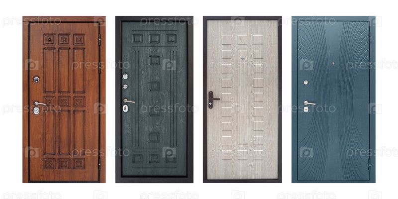 Набор моделей входных металлических дверей, изолированных на белом фоне