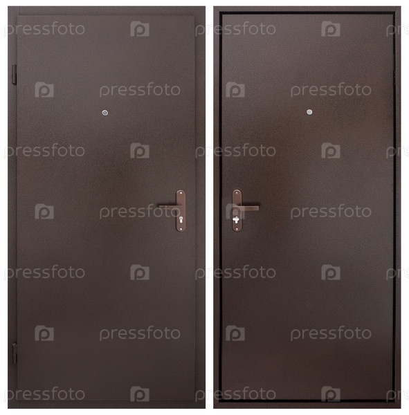 Двустворчатая входная металическая дверь, изолированная на белом фоне