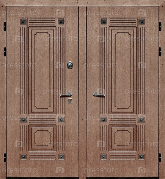 Модель входной металлической двери, изолированная на белом фоне