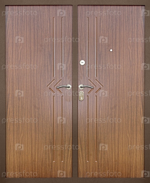 Двустворчатая входная металическая дверь, изолированная на белом фоне