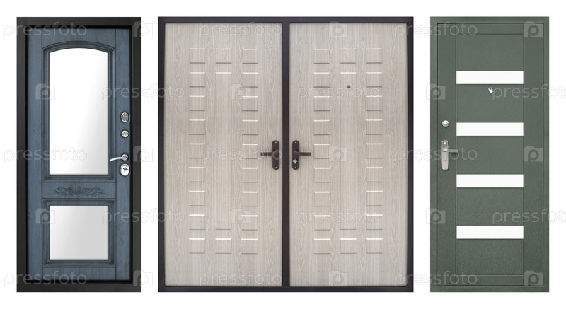 Набор моделей входных металлических дверей, изолированных на белом фоне